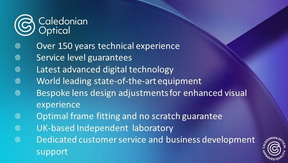 We have a unique proposition anchored on our Caledonian Approved Quality, offering a comprehensive collection of high-quality ophthalmic lenses, competitively priced. Investing in customer support we are dedicated to, delivering the best possible experience throughout your journey.